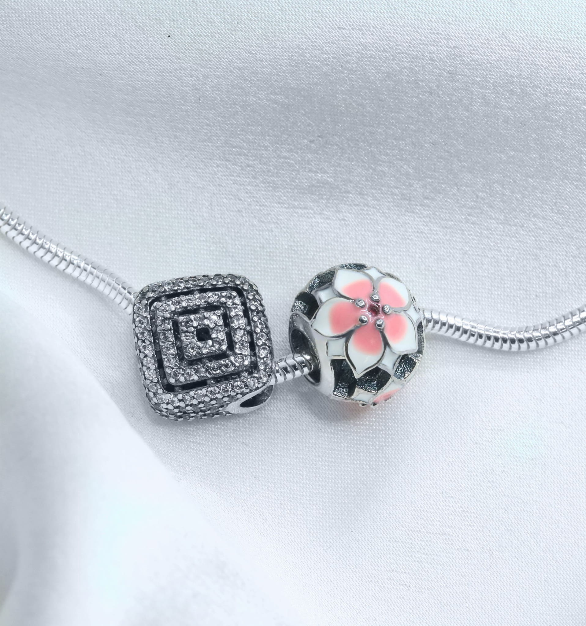 Kryształowe cyrkonie pięknie odbijają światło, nadając zawieszce efektowny, błyszczący wygląd, który doda Twojej bransoletce czy naszyjnikowi wyjątkowego charakteru. Ten subtelny, ale zarazem pełen przepychu dodatek, doskonale łączy się z innymi charmsami, tworząc spersonalizowaną, pełną blasku kompozycję.