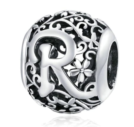 Srebrny Charms Ozdobna Literka R (2)