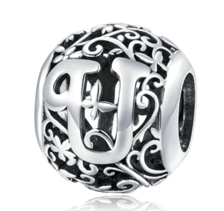Srebrny Charms Ozdobna Literka U