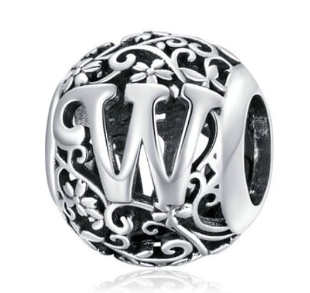 Srebrna zawieszka Charms Ozdobna Literka W do biżuterii modułowej