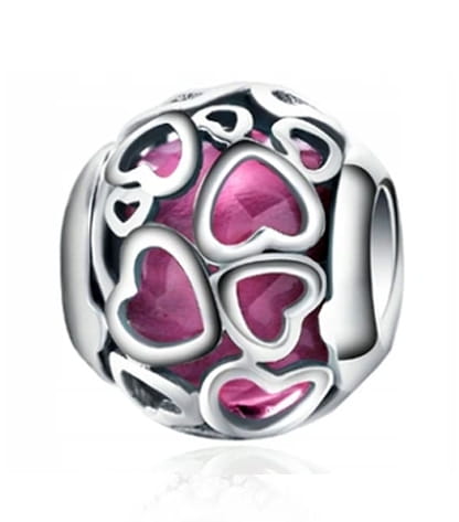 Srebrna zawieszka Charms Różowe Serca Miłość do biżuterii modułowej
