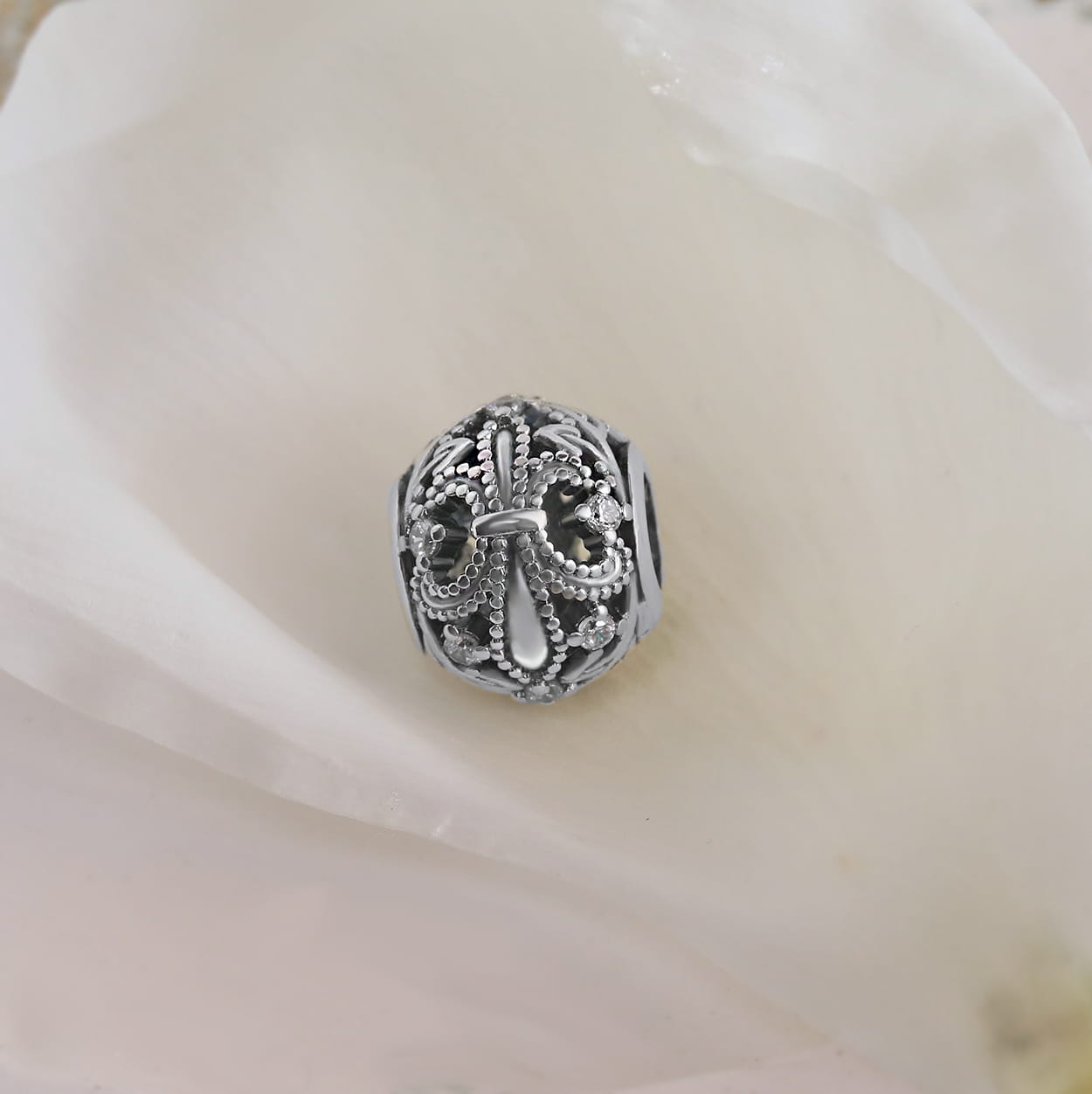 Srebrny Charms Ażurowy Kwiat Lilie