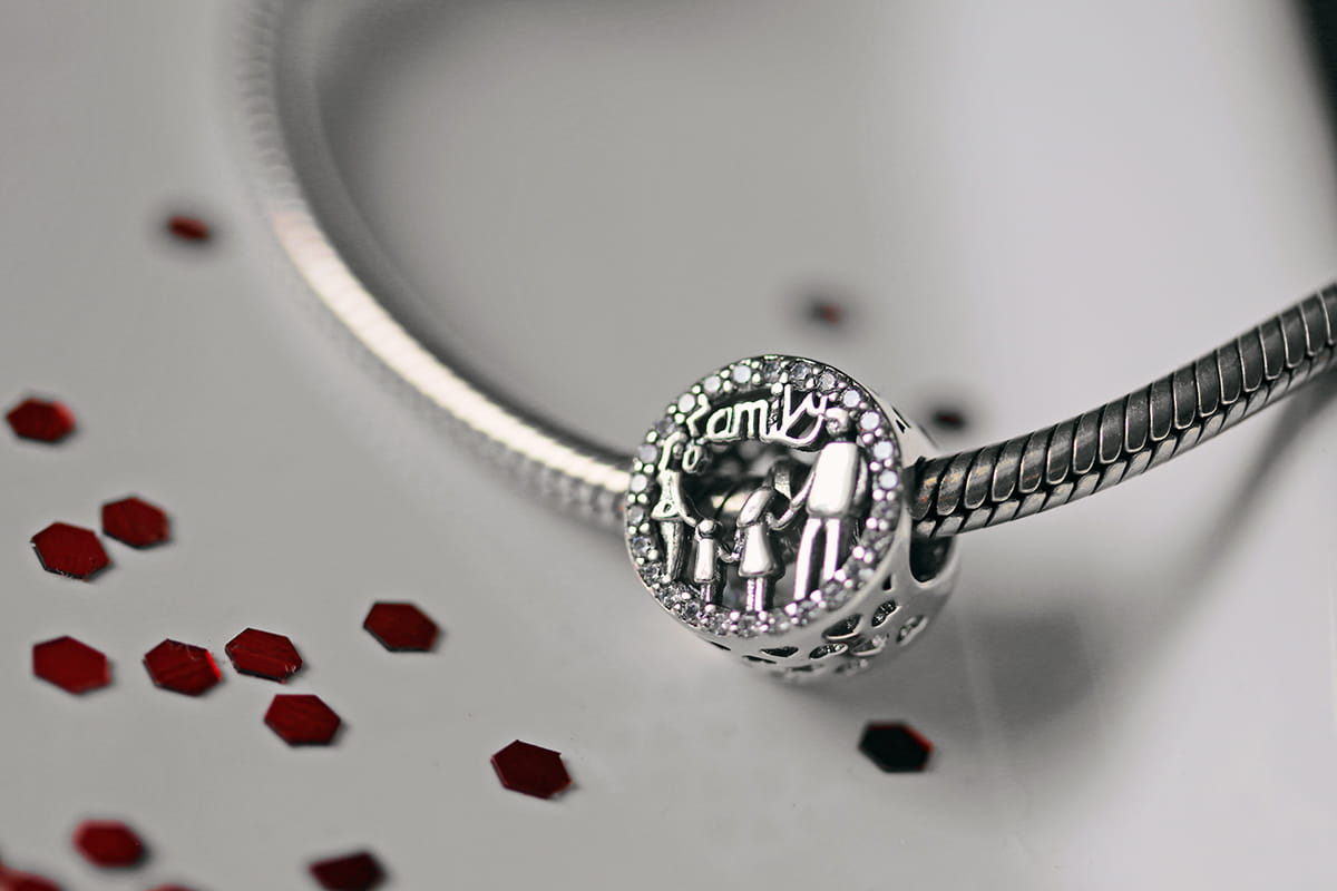 Srebrny Charms Ażurowy Rodzina