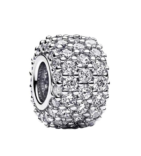 Charms ma klasyczny owalny kształt, który jest całkowicie wysadzany lśniącymi białymi cyrkoniami. Te precyzyjnie osadzone kamienie dodają niezwykłego blasku i sprawiają, że biżuteria mieni się przy każdym ruchu. Dzięki swojemu eleganckiemu wyglądowi, charms doskonale komponuje się z innymi elementami na bransoletce, tworząc harmonijną całość.