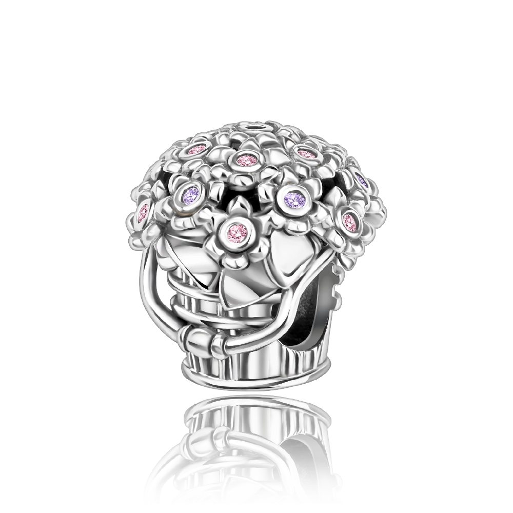 Srebrna zawieszka Charms Bukiet Pięknych w Koszyczku do biżuterii modułowej