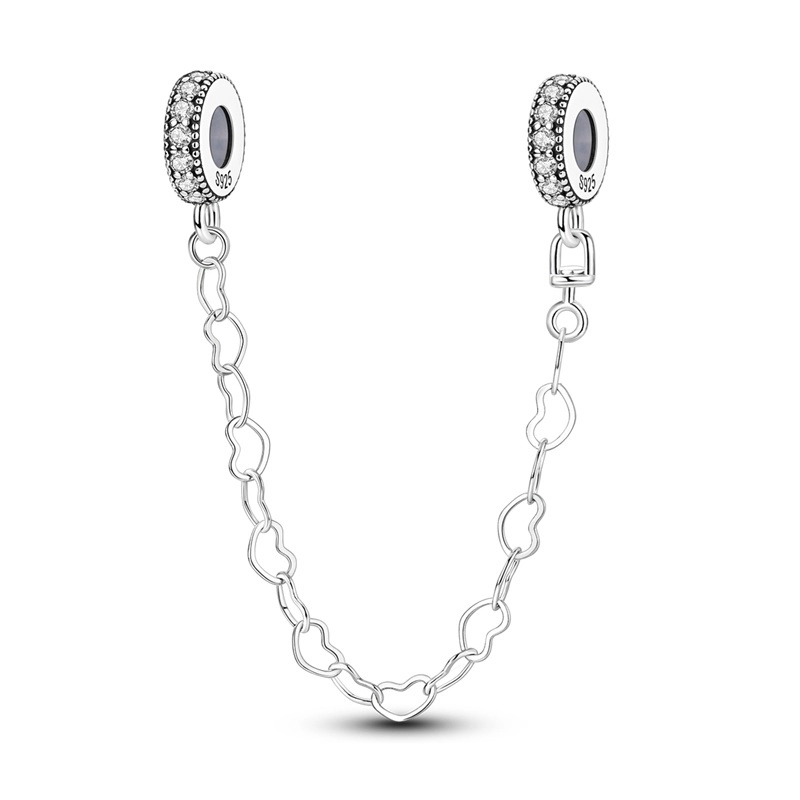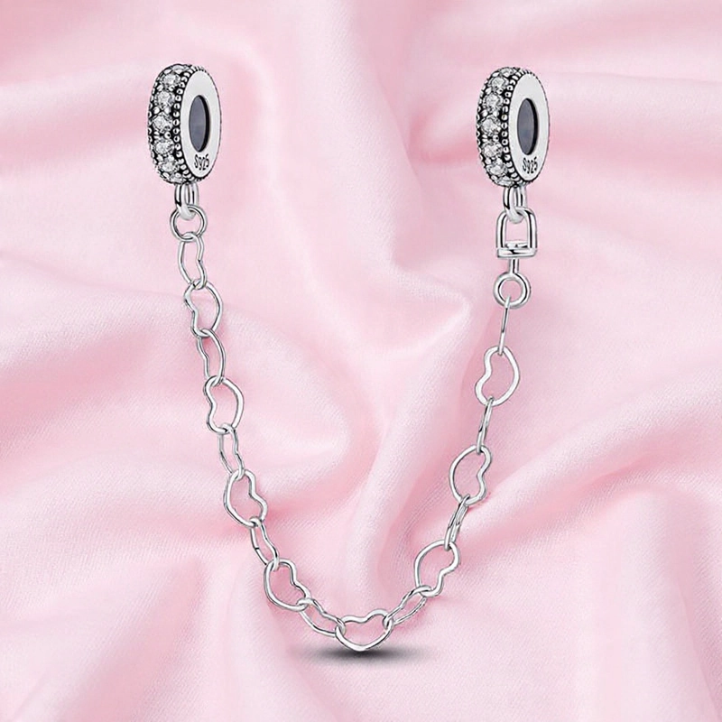 Srebrny Charms Łańcuszek Zabezpieczający Łańcuch Serc
