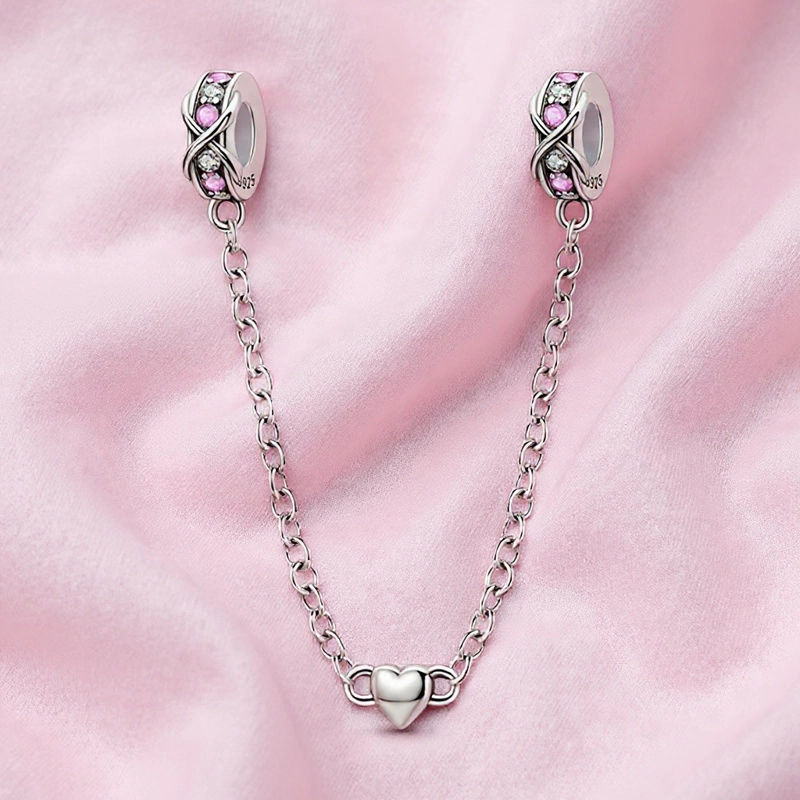 Srebrna zawieszka do biżuterii modułowej Łańcuszek Zabezpieczający Szept Serca