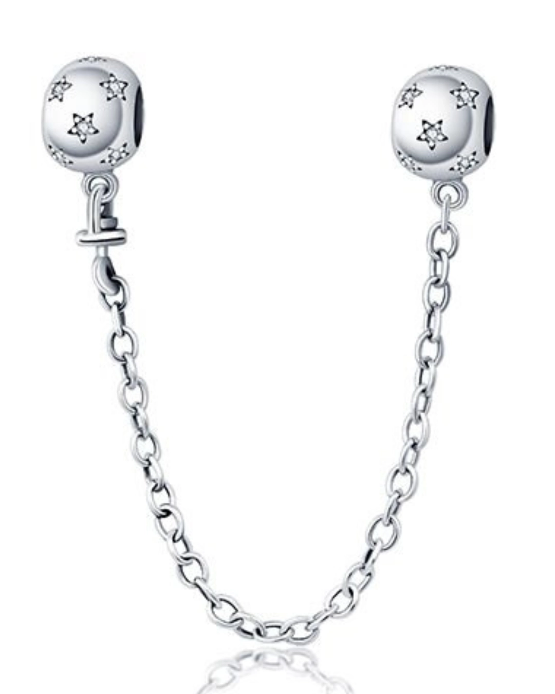Srebrna zawieszka Charms Łańcuszek Zabezpieczający Gwiazdki do biżuterii modułowej