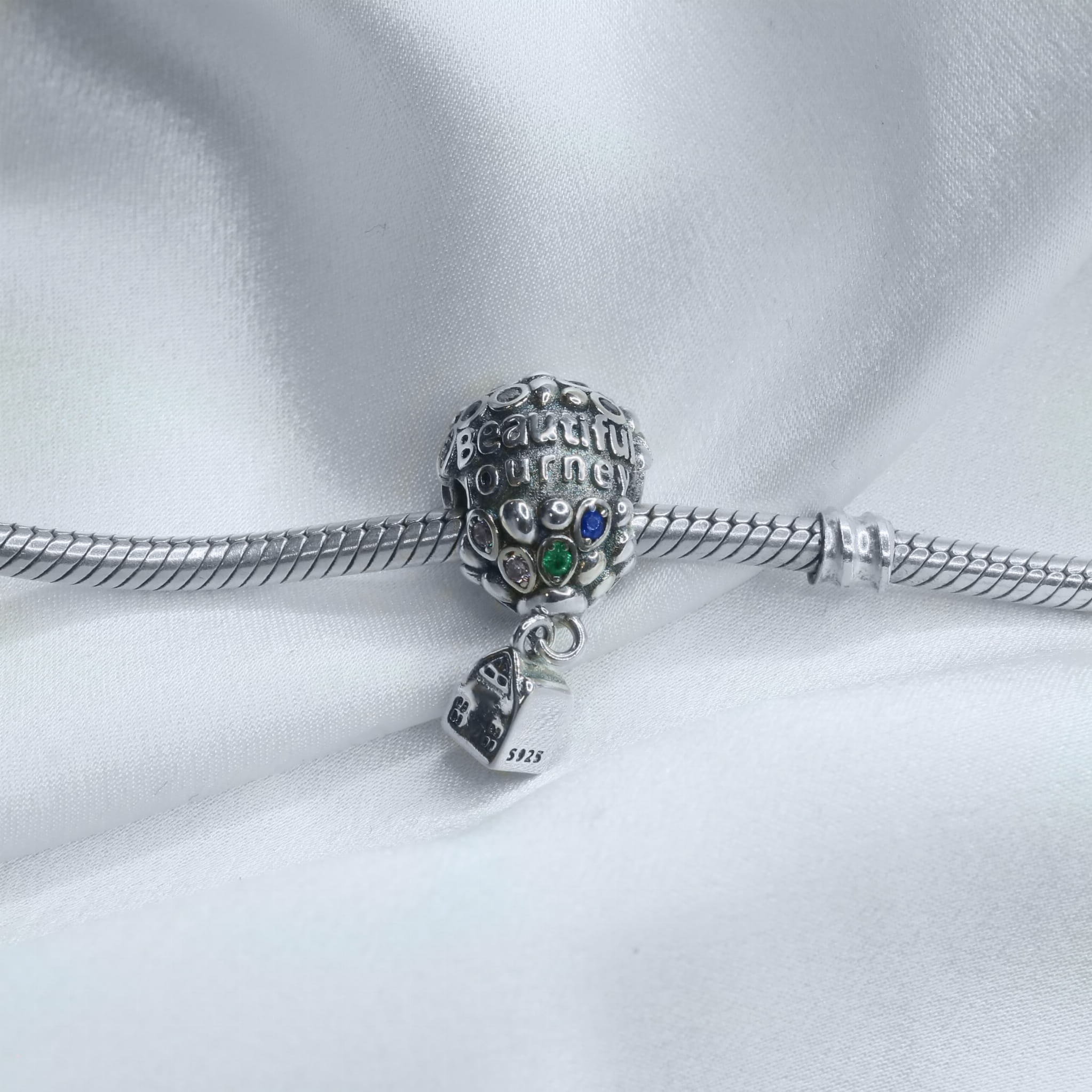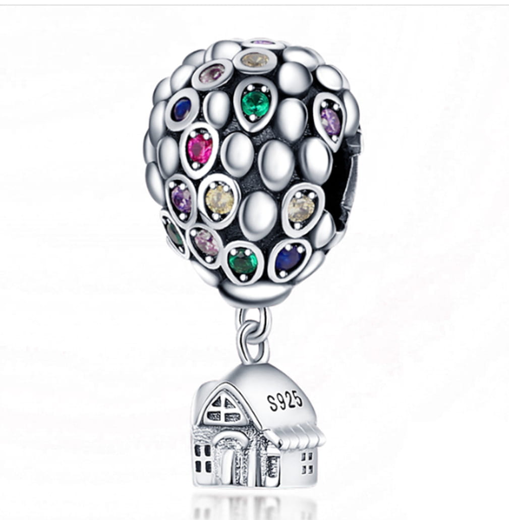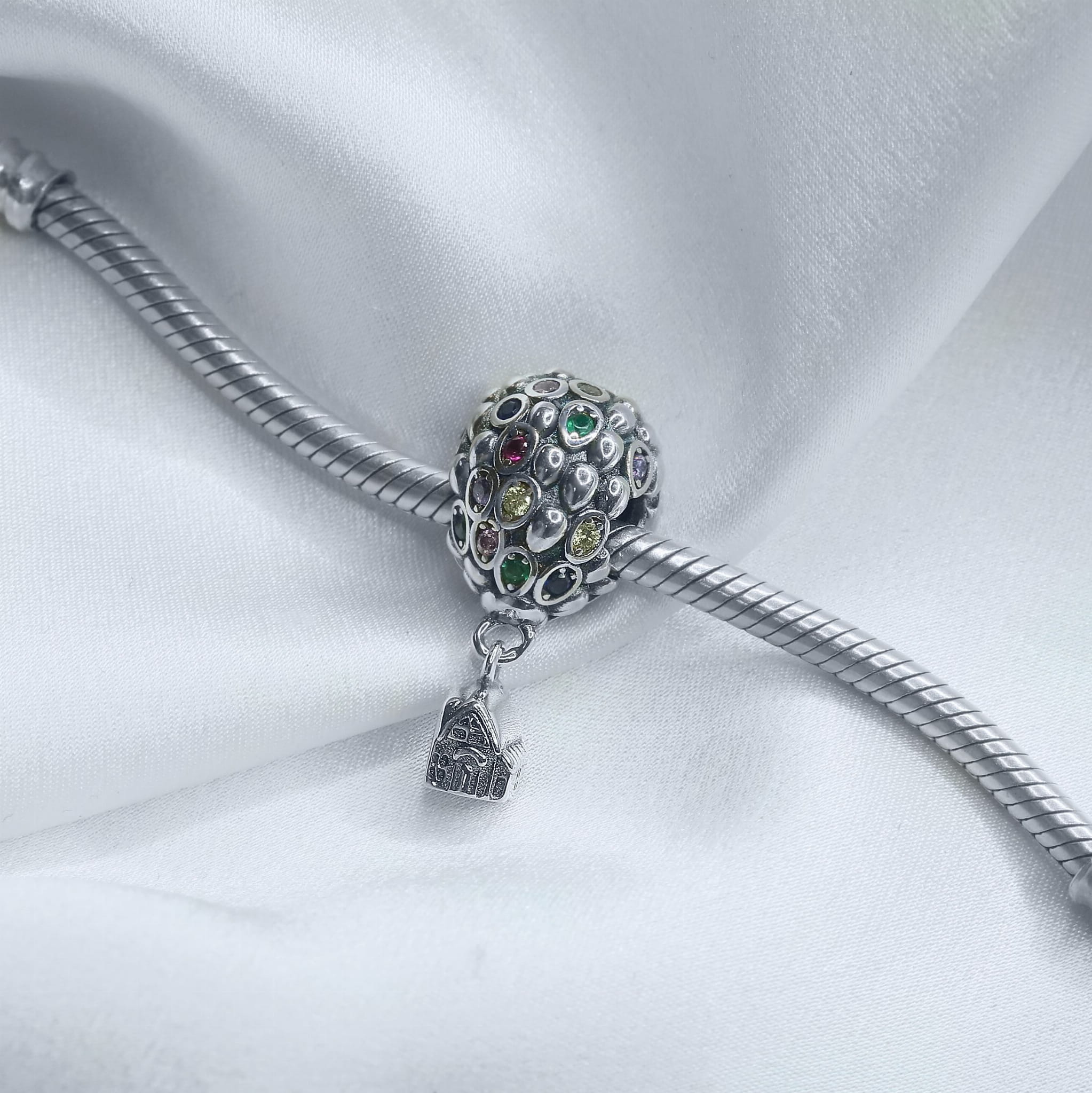 Srebrna zawieszka Charms Latający Domek z Balonem Kolorowe Cyrkonie do biżuterii modułowej