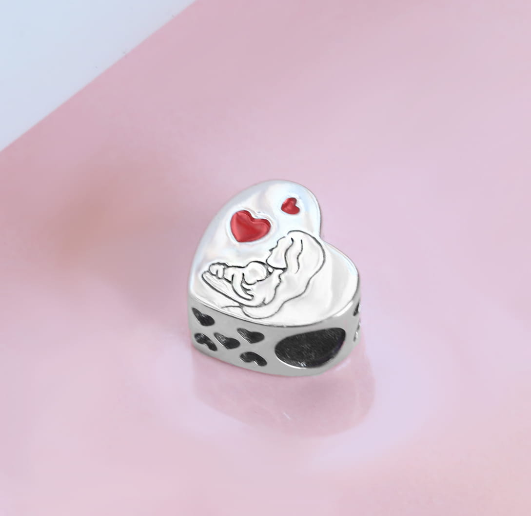 Wyraź swoją miłość i więź rodzinną z naszą srebrną zawieszką Charms Mama z Dzieckiem! Wykonana z wysokiej jakości srebra próby S925, ta wzruszająca zawieszka symbolizuje piękną relację między mamą a dzieckiem.