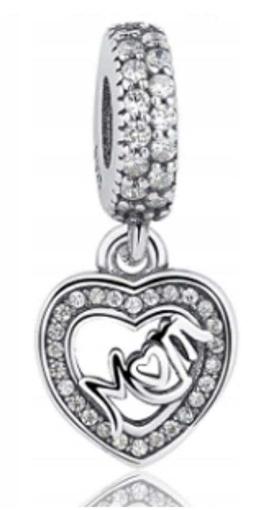 Srebrna zawieszka Charms do Pandora Srebrny Charms „Mom” z Kryształkami