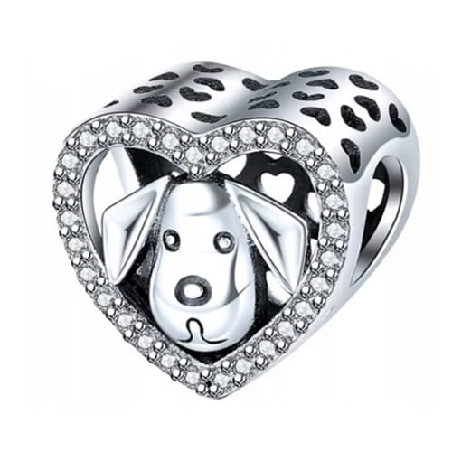 Srebrna zawieszka Charms Pies w Sercu do biżuterii modułowej
