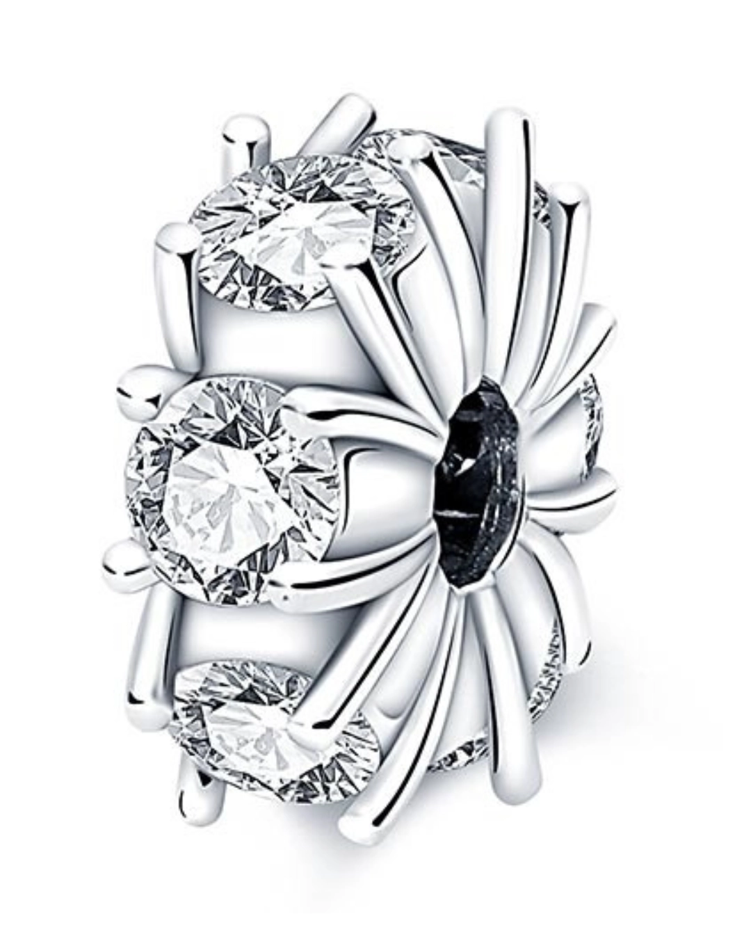 Srebrny Charms Separator Eleganckie Białe Cyrkonie