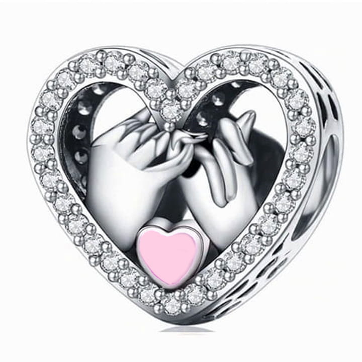 Srebrna zawieszka Charms "Na Zawsze" to niezwykły dodatek do biżuterii modułowej, który wyraża wieczną miłość i wierność. Ta urocza zawieszka przedstawia splecione palce z małym różowym sercem w środku, symbolizujące trwałą więź i związek. Delikatne detale i wysoka jakość wykonania sprawiają, że ta zawieszka staje się wyjątkowym elementem biżuterii, który przyciąga uwagę swoim urokiem i wyjątkowością. Dzięki swojemu wyjątkowemu wzornictwu, ten charms doskonale pasuje do bransoletki Pandora, dodając jej wyjątkowego uroku i osobistego stylu. Może być noszony samodzielnie, jako wyraz wiecznej miłości i lojalności, lub w połączeniu z innymi charmsami, tworząc spersonalizowaną biżuterię, która wyraża Twoje uczucia. Ta srebrna zawieszka Charms "Na Zawsze" będzie nie tylko pięknym dodatkiem do Twojej biżuterii, ale także wyjątkowym prezentem dla ukochanej osoby, który będzie przypominał o wiecznej miłości i związku, który trwać będzie na zawsze.