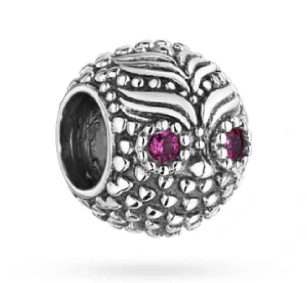 Srebrna zawieszka Charms Sowa z Fioletowymi Cyrkoniami do biżuterii modułowej
