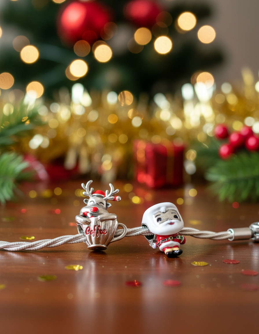 Srebrny Charms Uroczy Mikołaj Z Prezentem