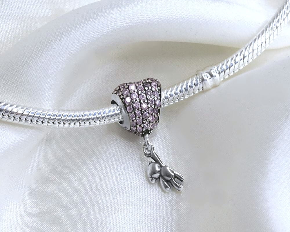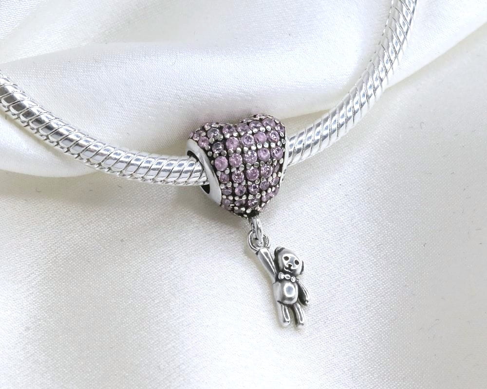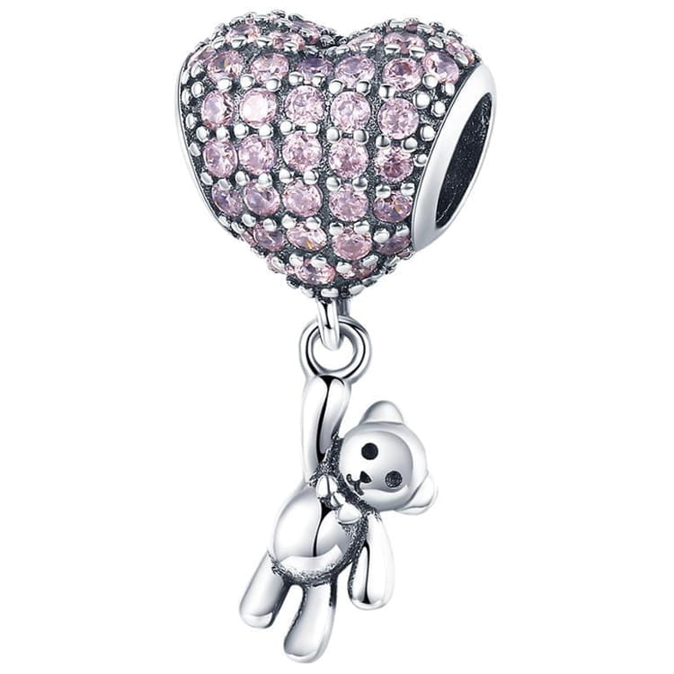 Srebrna zawieszka Charms Zawieszka Miś z Różowym Sercem do biżuterii modułowej